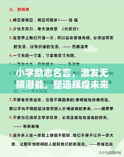 小学生正处于人生最充满活力和潜力的阶段,他们如同一张白纸,等待着知识的色彩和励志的力量,学校励志语录,正是激发他们奋发向前、勇敢拼搏的源泉,本文将从小学角度出发,分享一系列励志语录,帮助孩子们在成长的道路上坚定信念,勇往直前。