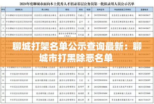 近日,聊城市公安局针对近期发生的打架斗殴事件,进行了详细的调查和整理,并对外公示了涉及人员名单。本文将为您详细介绍此次公示的背景、目的以及查询方式,帮助市民了解最新情况。